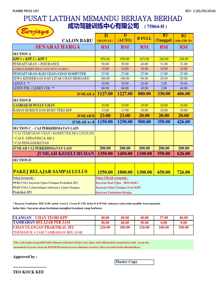 . Bagi tahun 2022 akan dikemaskini. Harga yang ditunjukkan merangkumi yuran pembelajaran dan latihan pemanduan untuk mengambil lesen kereta atau. Kadar harga yang ditetapkan adalah seperti yang berikut.