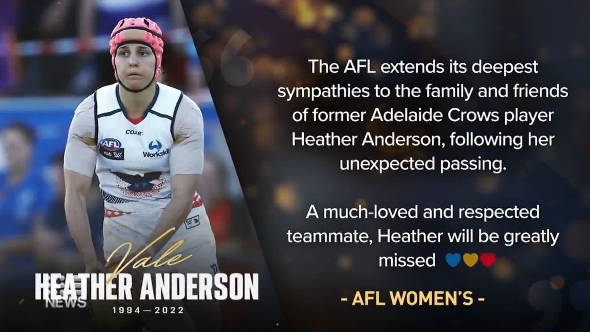 Adelaide Crows AFLW premiership player Heather Anderson has died at just 28 years of age. Heather Anderson was the 10th selection in the inaugural AFLW draft in 2016. The Adelaide Crows are mourning the sudden death of AFLW premiership Heather Anderson.